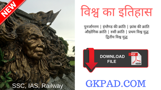 Disclaimer:– हमने न तो इस world history notes को बनाया है और न ही स्कैन किया है | यह बुक इंटरनेट पर पहले से ही उपलब्ध थी और हमने बस उसका लिंक यहाँ दिया | अगर हम किसी तरह के कॉपीराइट का उलंघन कर रहे हैं, तो हमें इस ईमेल (GKPAD.COM@gmail.com) पर मेल करके बताएं |