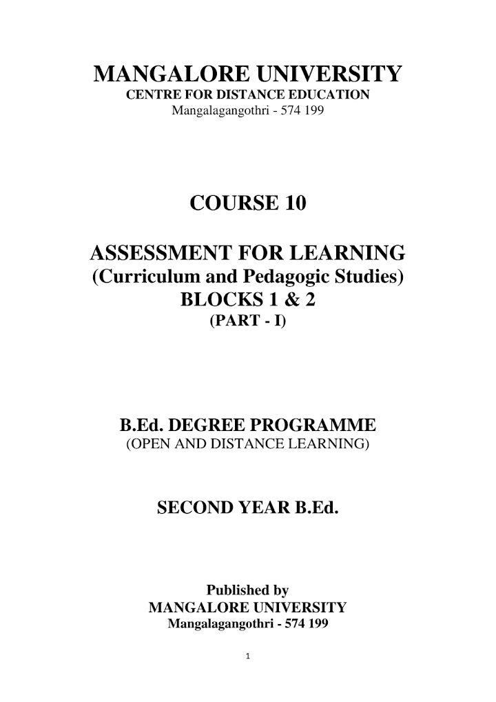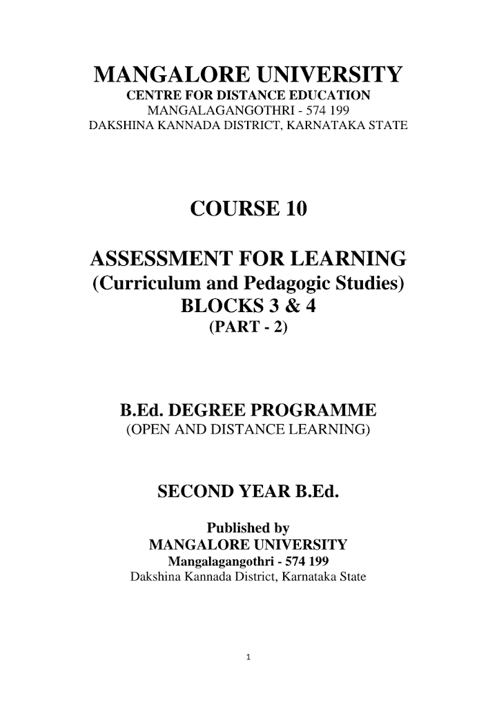 💖In this section, I’ve shared B.Ed Assessment for Learning Book in the English language. This book is published by Mangalore University.💖