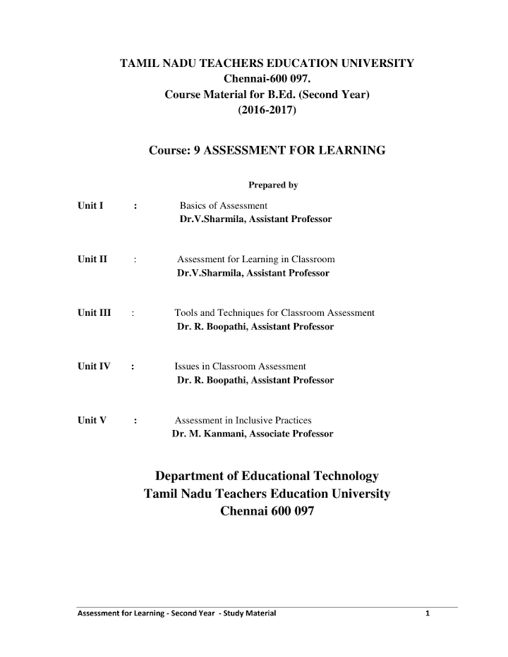 💖In this section, I’ve shared B.Ed Assessment for Learning Book in the English language. This book is published by Tamilnadu Teachers Education University.💖