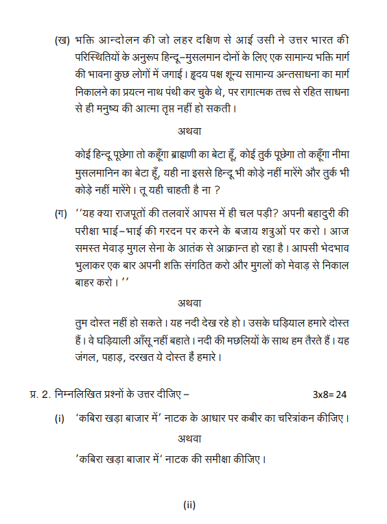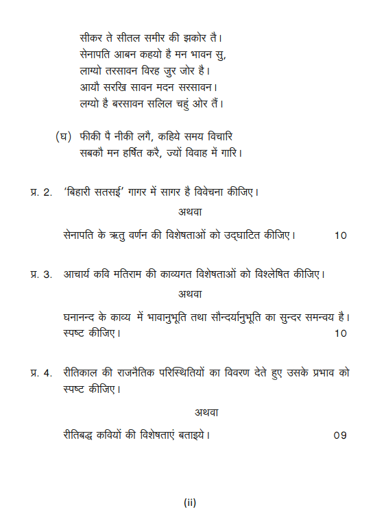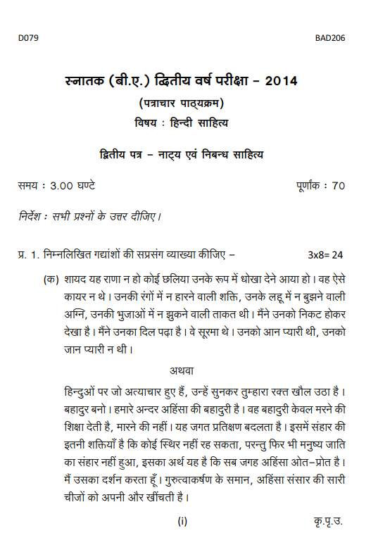 BA 2nd Year Hindi Literature Question Paper 2024 PDF