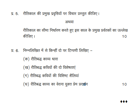 MLSU BA 2nd Year Hindi Literature Paper 2018