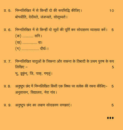 BA 3rd Year Sanskrit Literature Question Paper 2021