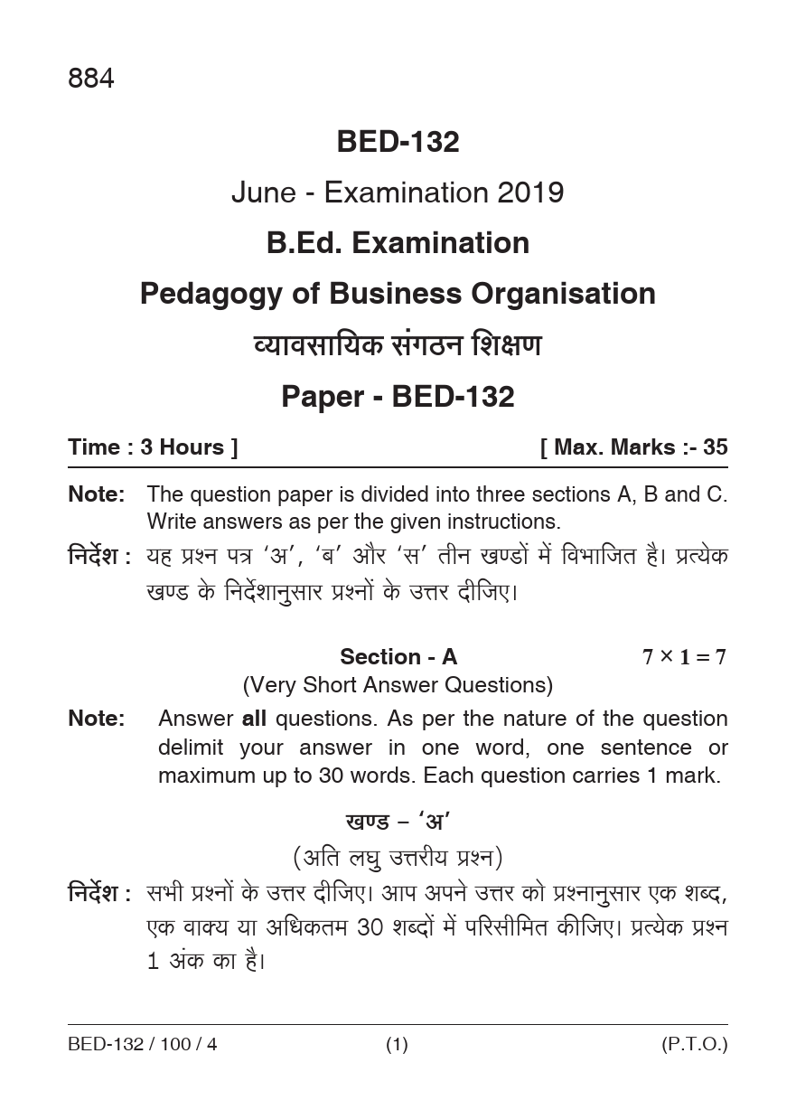BED Pedagogy of Business Organization Question Paper PDF June 2019