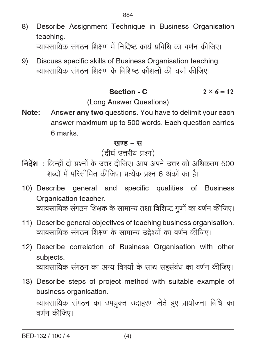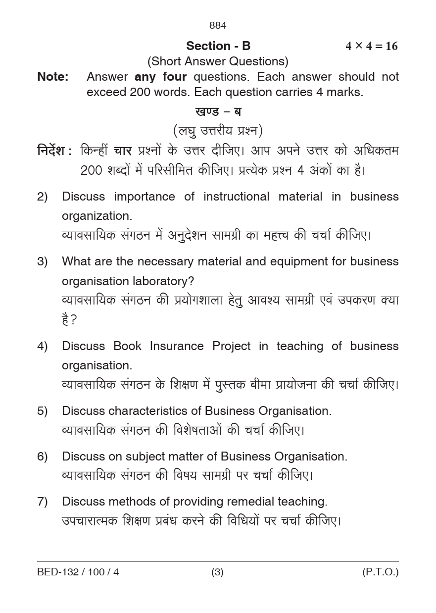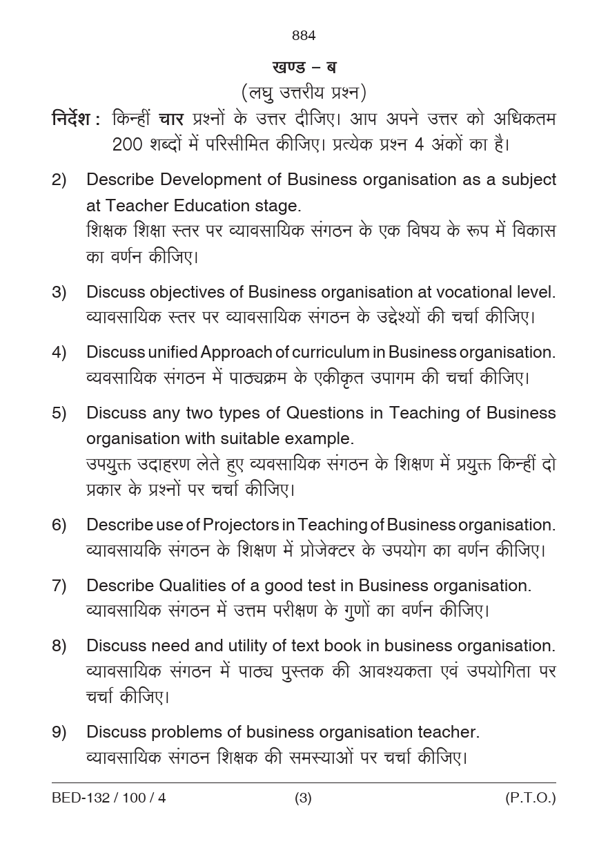 BED Pedagogy of Business Organization Question Paper 2023 PDF