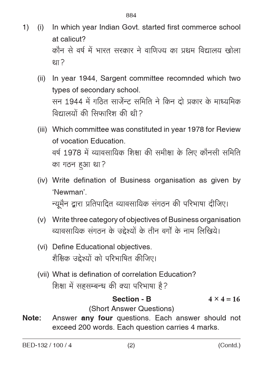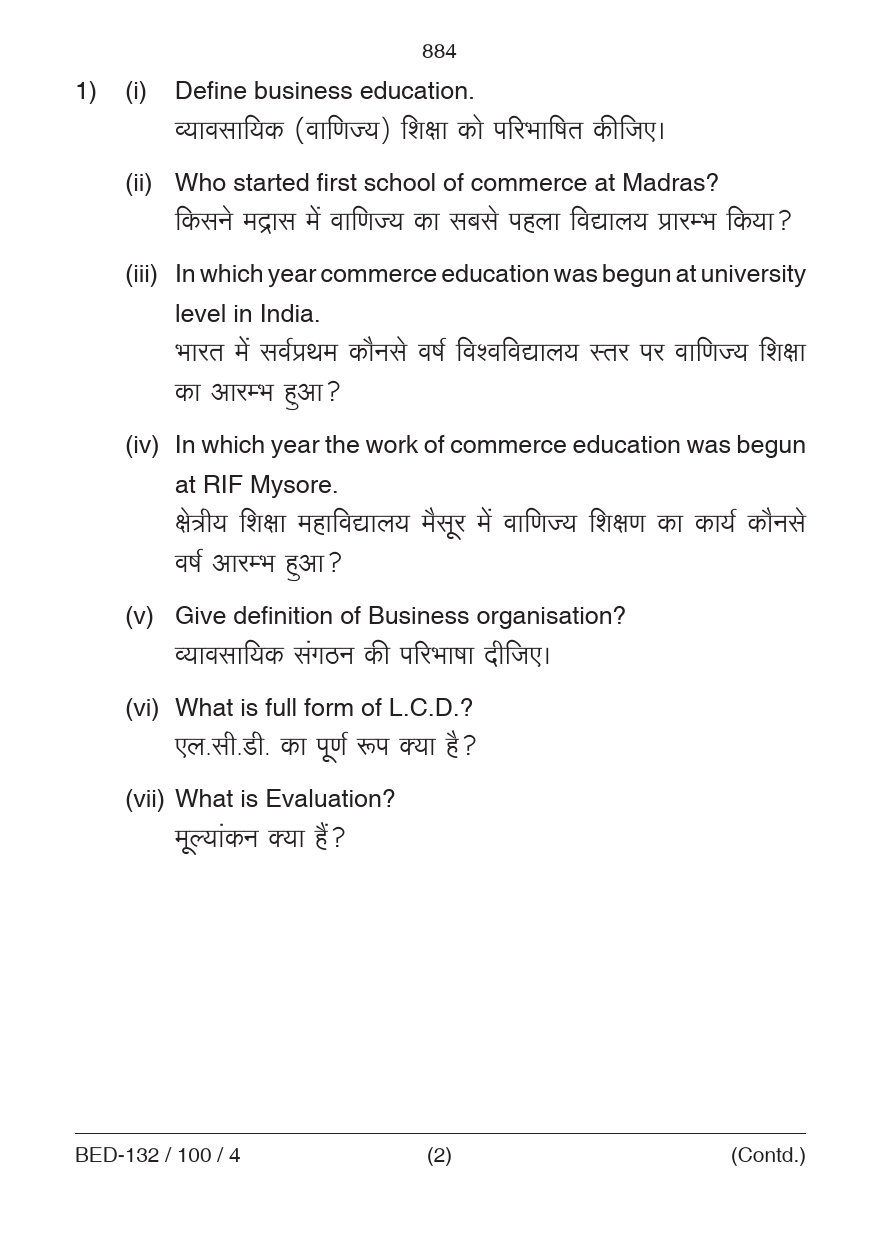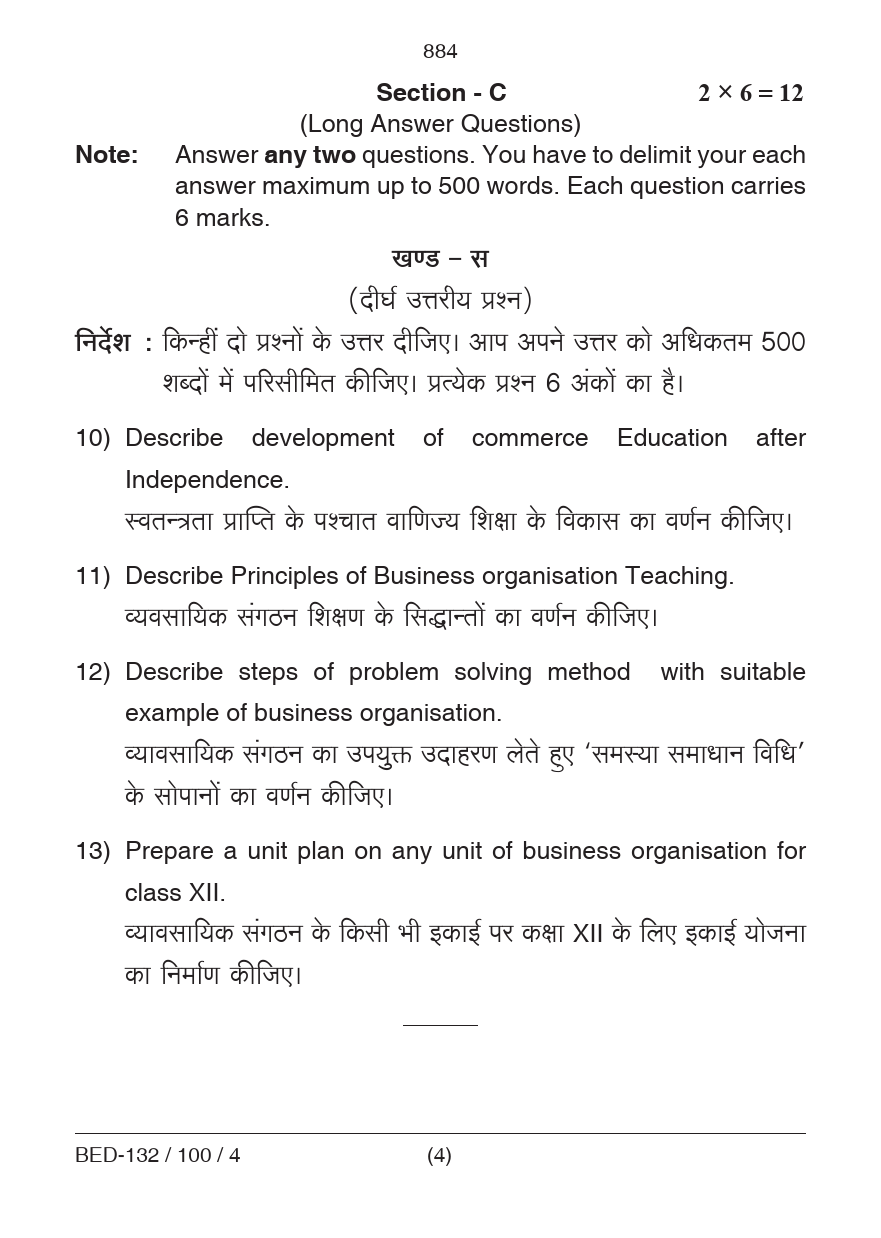 BED Pedagogy of Business Organization Question Paper 2023 PDF