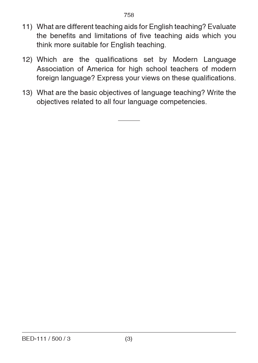 ❌इस सेक्शन में बीएड के छात्रों के लिए अंग्रेजी का शिक्षण शास्त्र का Old Question Paper (क्वेश्चन पेपर्स) दिया गया है | ❌