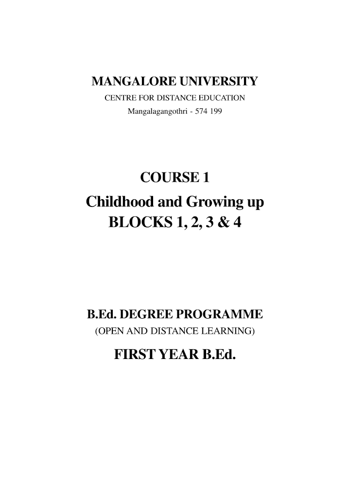 Childhood and Growing Up Book in English PDF by Mangalore University