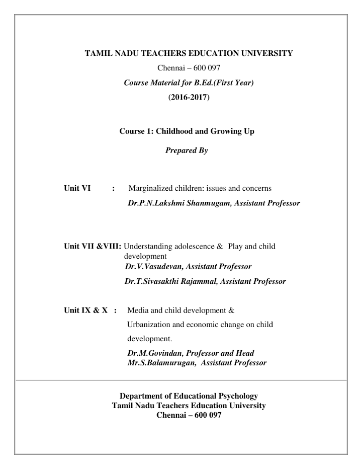 💖In this section, I’ve shared B.Ed Childhood and Growing Up Book in the English language. This book is published by Tamilnadu Teachers Education University.💖