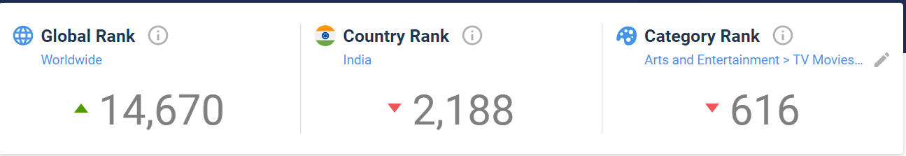 इंडिया में यह movie website बहुत ही popular है | Amazon कंपनी ने Alexa नामक एक सॉफ्टवेयर बनाया है, जो यह बताता है की किसी वेबसाइट की दुनिया में रैंक कितनी हैं | नीचे hindilinks4u वेबसाइट का अलेक्सा रैंक दिया गया है |