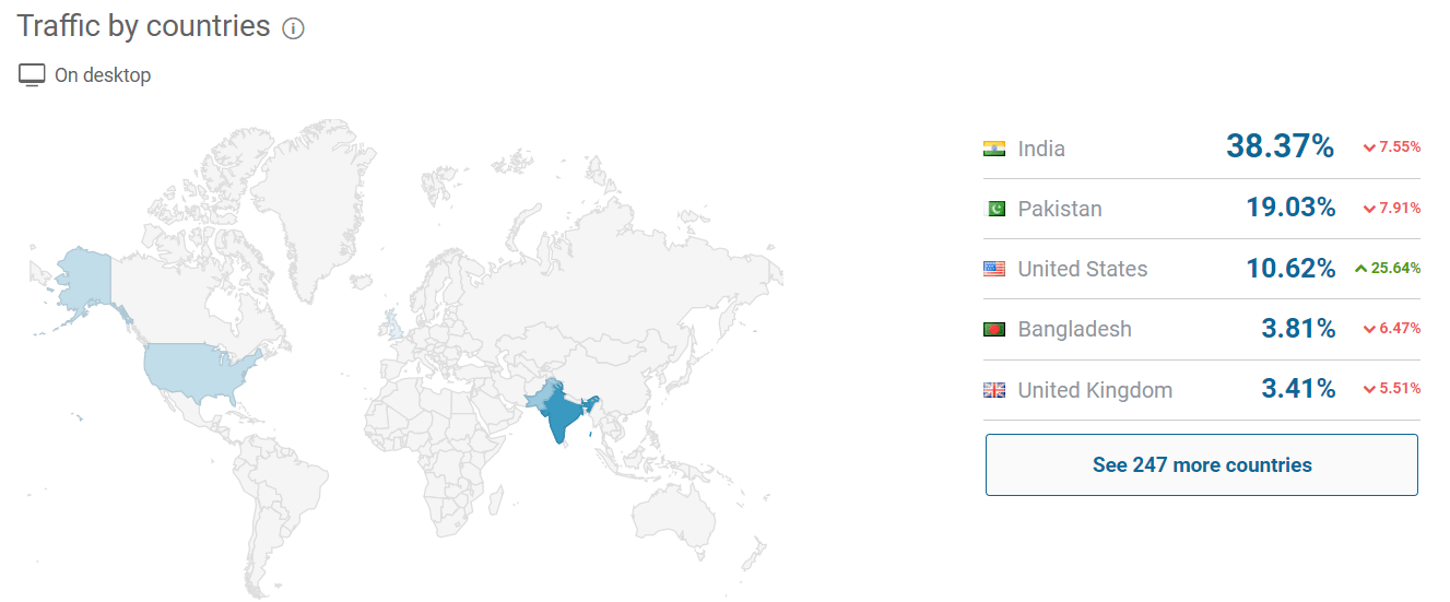 जैसा की उपरोक्त अलेक्सा डाटा से ही प्रदर्शित है की यह वेबसाइट कितनी popular है | नीचे hindilinks4u.com वेबसाइट का ट्रैफिक डिटेल्स दिया गया है |