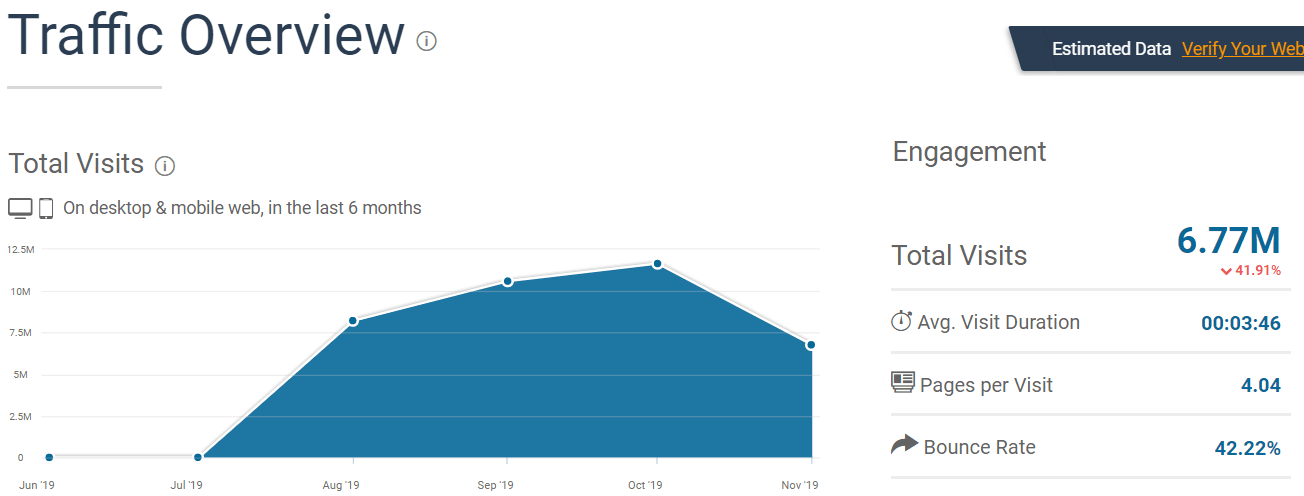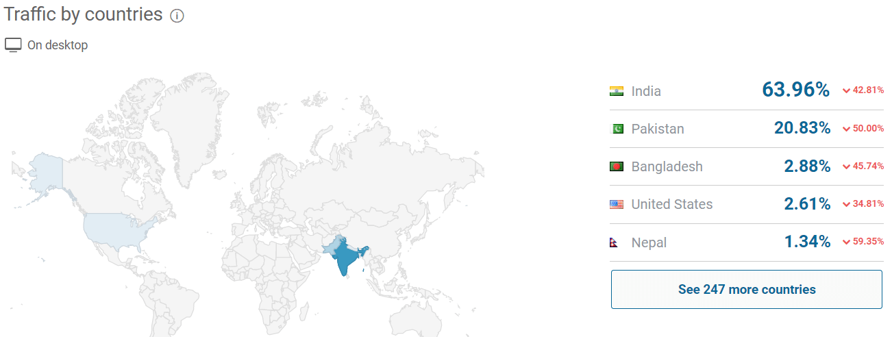 जैसा की उपरोक्त अलेक्सा डाटा से ही प्रदर्शित है की यह वेबसाइट कितनी popular है | नीचे KatmovieHD.com वेबसाइट का ट्रैफिक डिटेल्स दिया गया है |
