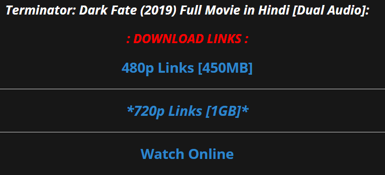 अब आप movie के पेज पर नीचे जाइए वहां आपको डाउनलोड लिंक दिखाई देगा | (नीचे इमेज देखें) | जहाँ अलग-अलग quality और size के हिसाब से लिंक दिया होगा | आप अपने पसंद के quality वाले लिंक पर क्लिक करें {उदहारण के रूप में मैं 720p quality और 1gb size वाले लिंक पर क्लिक कर रहा हूँ} | यहाँ online देखने का option भी है अगर आप चाहें तो online movie भी देख सकते हैं |