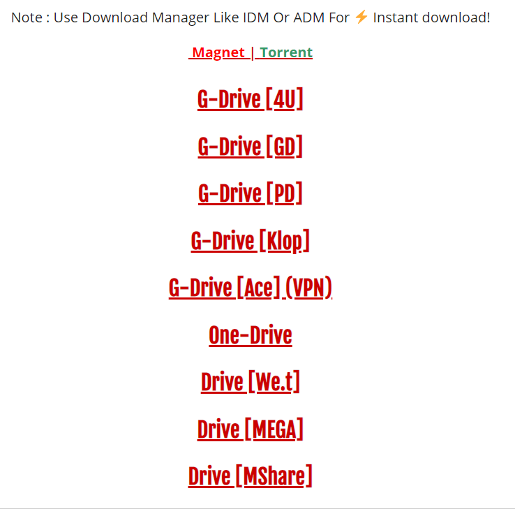 जैसे ही आप download बटन पर क्लिक करेंगे आपके सामने एक पेज ओपन होगा जिसपर सभी अलग-अलग servers से डाउनलोड करने का लिंक दिया होगा जोकि कुछ इस प्रकार दिखेगा (इमेज देखें)